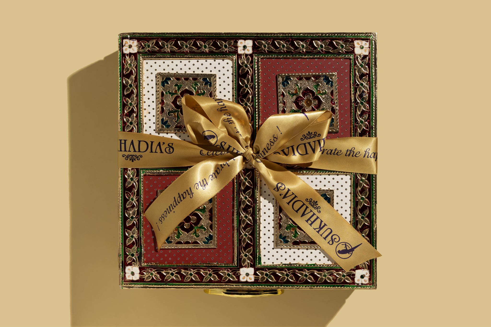 Please note, Sukhadia's gifts are made to order and thus, actual sweets may vary slightly from the photo. The packaging team will use items that are freshly made, in season, and appropriate for transit to your destination.Â