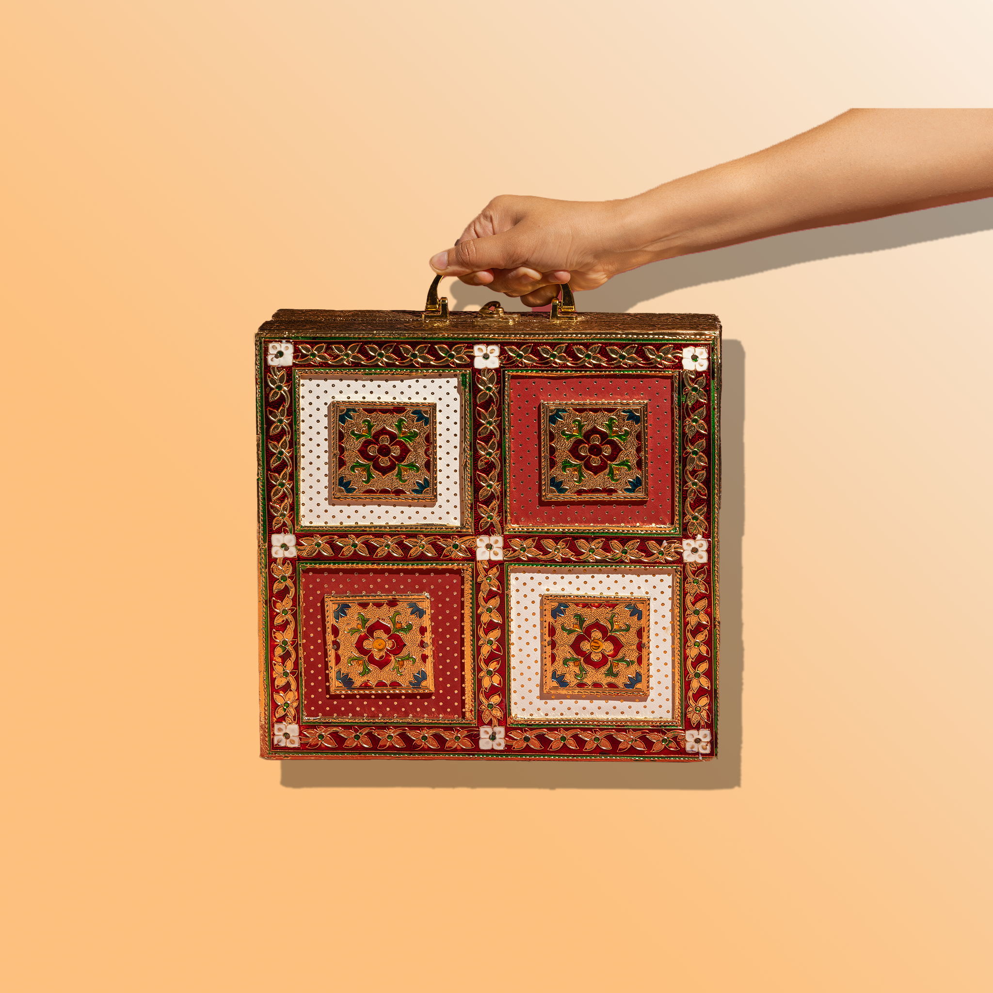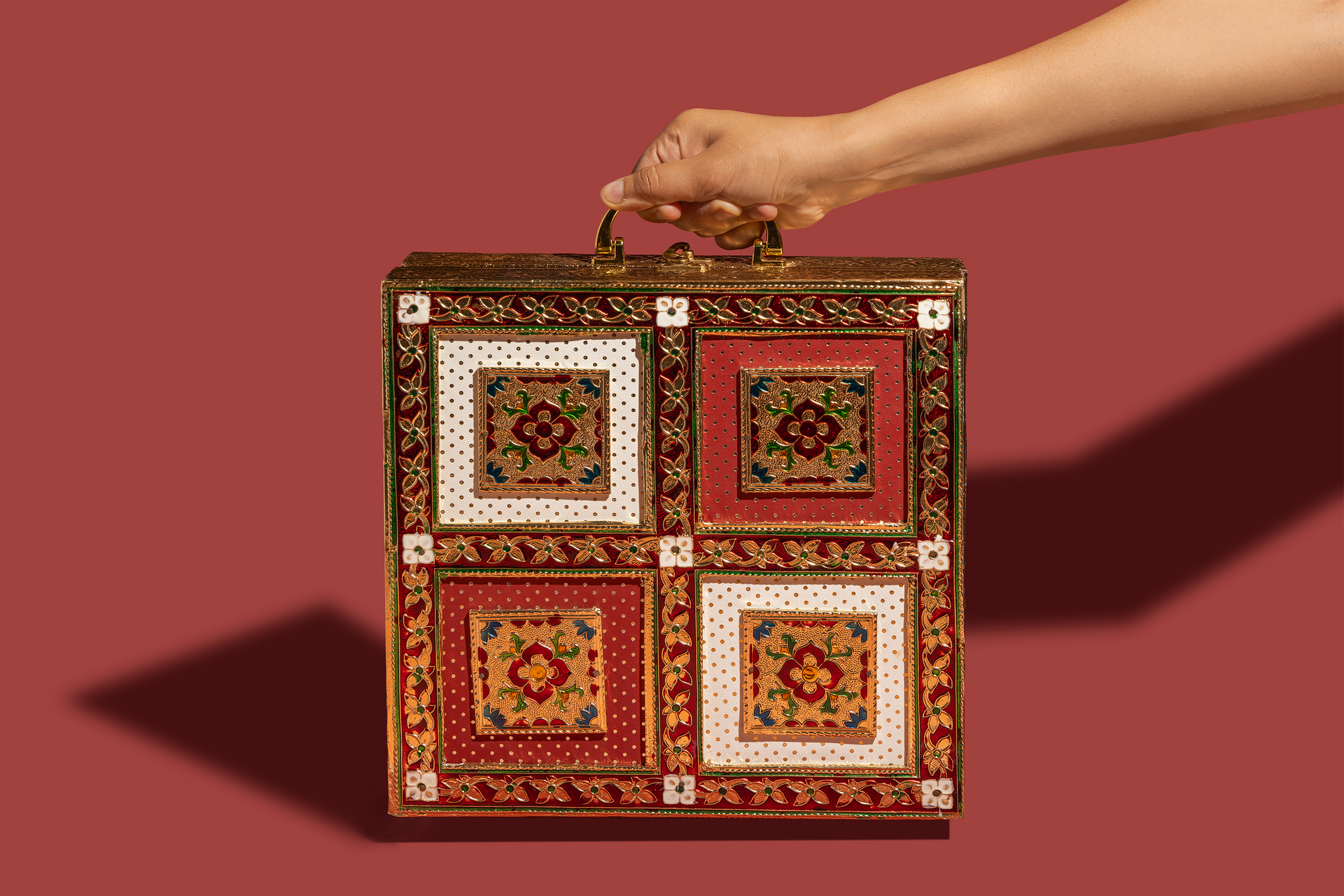 Make your Diwali celebrations complete with our beautiful nakashi gift box. It comes with our premium and handpicked selection of motichoor ladoos, cashew matka, black pepper cashews and red pepper cashews.