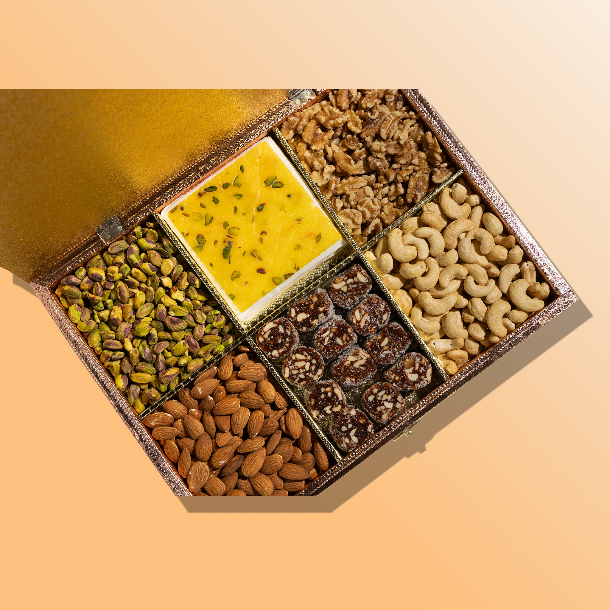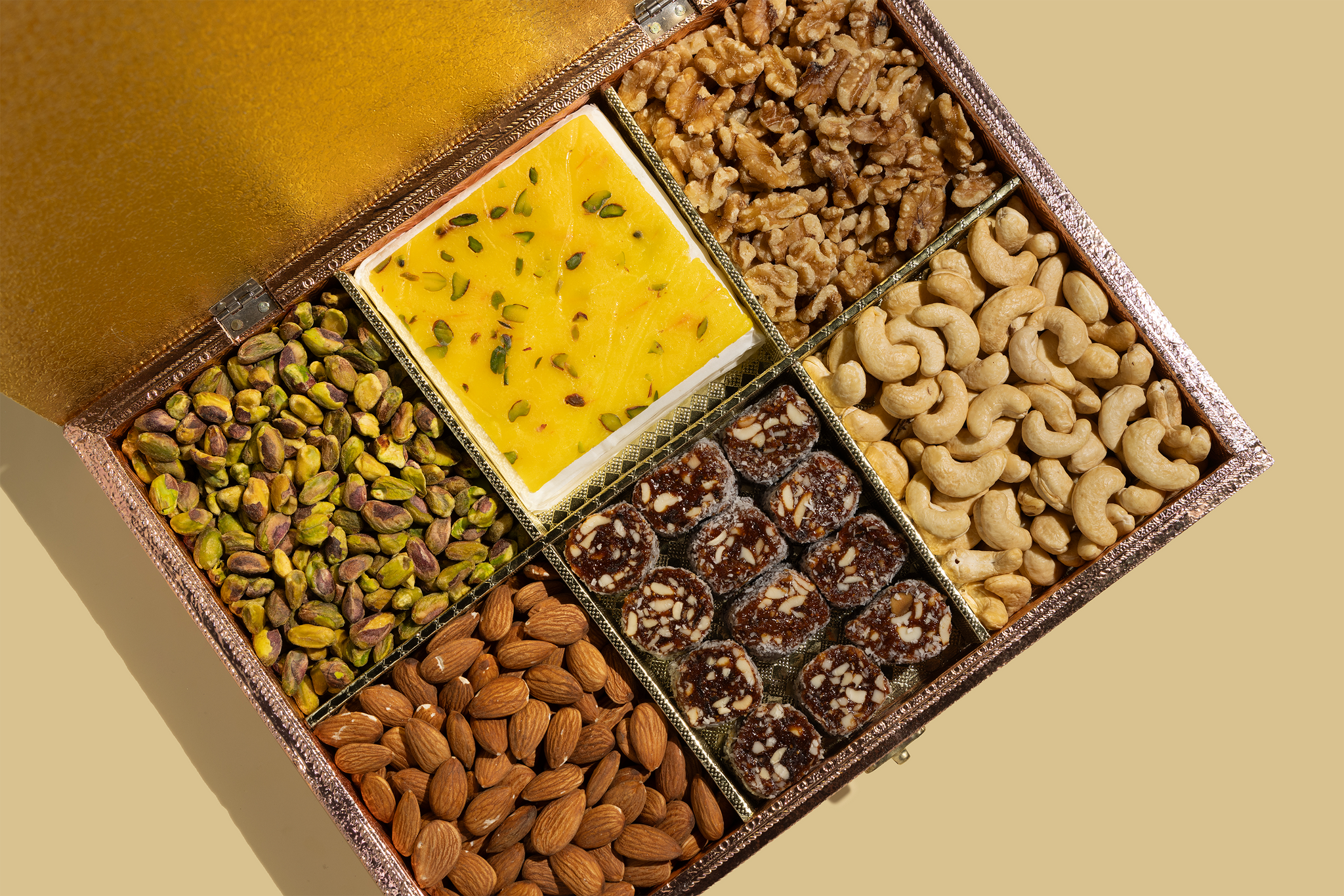 Make your Diwali celebrations complete with our beautiful nakashi gift box. It comes with our premium and handpicked selection of sweets and nuts.