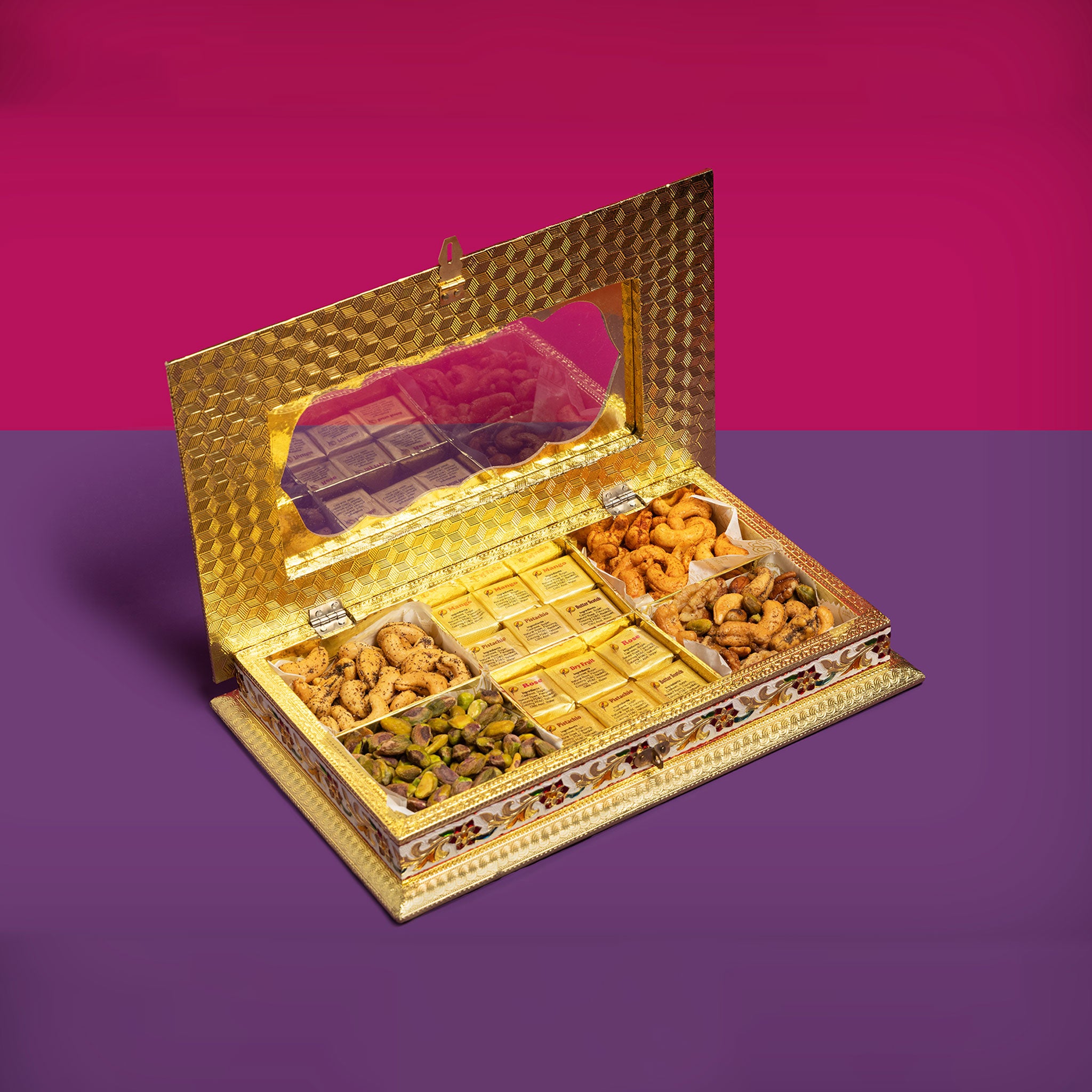 Celebrate the spirit of Diwali with our luxurious Nuts & Bites Treasure Box β a beautifully crafted gift box filled with premium roasted dry fruits and rich Indian bites.